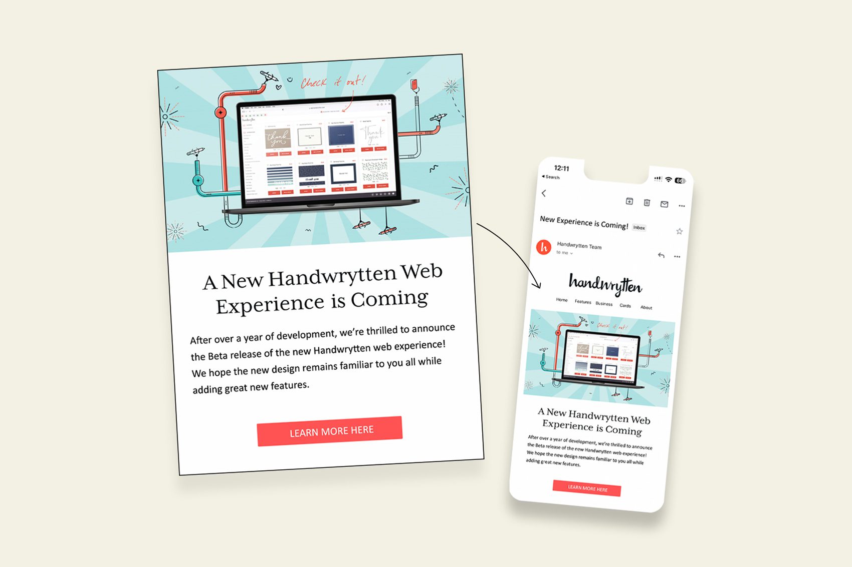 A variety of greeting cards were designed and formatted for print. Each card is tailored for both Handwrytten’s customers and clients to use for personal and business needs. They feature hand illustrations and original vector art, providing a handmade feel that complements their brand.