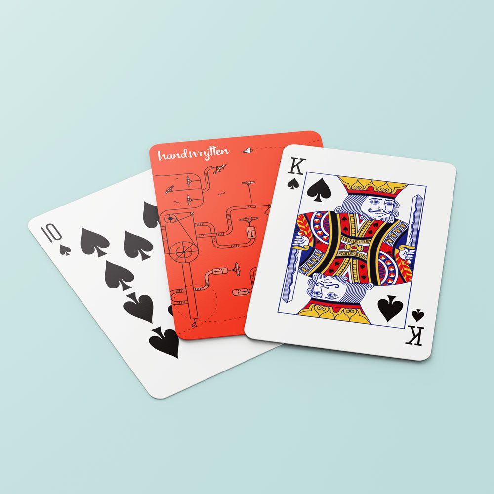 Marketing material was created to showcase Handwrytten’s services while staying consistent with their playful branding. I was tasked to design a sample kit folder and a set of playing cards for their presence at the CES convention (Consumer Electronics Show) in Las Vegas, serving as freebies to attract their target audience in the lively casino atmosphere.